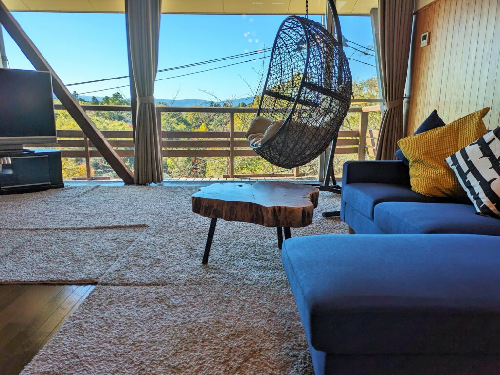 木製のハンモックやプレイルームが室内に常設されている伊豆002