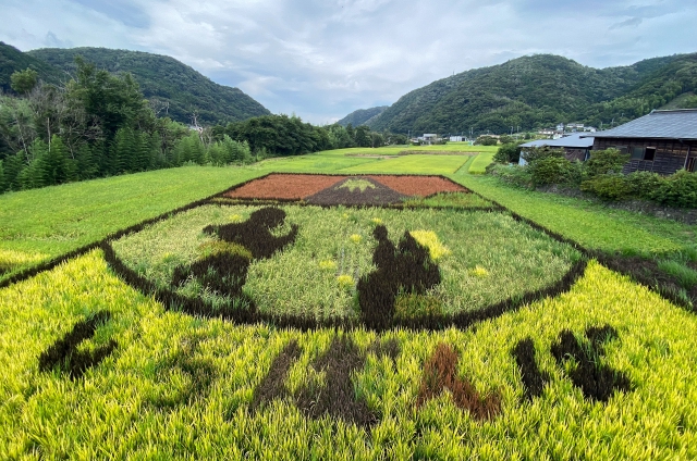 ただの田植え体験ではなく、稲刈りの時期には田んぼアートをみることができます。
