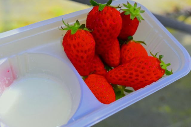 紅ほっぺの甘さを楽しんでもらうために練乳を出していませんが、練乳の持込OKです!