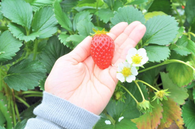 こちらの品種は関東ではよく見かける銘柄ですが、この農園で体験したスタッフの話によると・・ここで摘みたてのいちごはとってもジューシーで香り豊かだったとか!