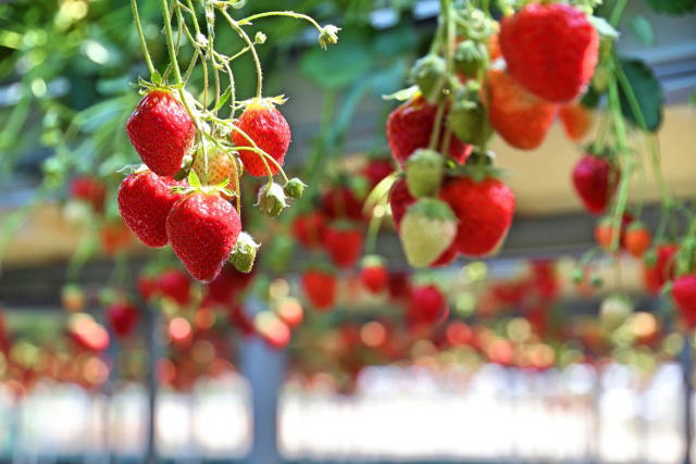 また、高設栽培はお子様の目線などにいちごが成っているので、小さいお子様でもしゃがむことなく簡単にいちご狩りができます。