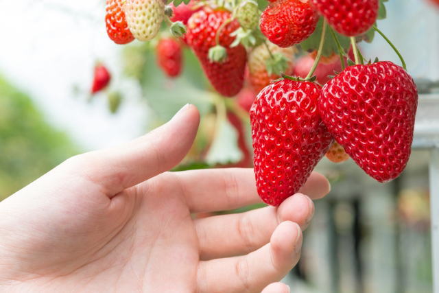 韮山いちご狩りセンターでは、甘味と酸味が調和した「紅ほっぺ」を食べることができます。