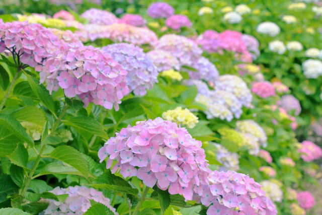 例年、約6,000株の色とりどりの紫陽花が咲き誇り、見る人を魅了させています。