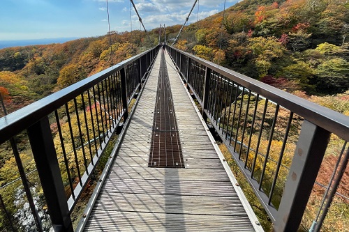 全長65メートル・幅1.5メートル・川面からの高さ15メートルと紅葉を眺めるのに最適スポットです。