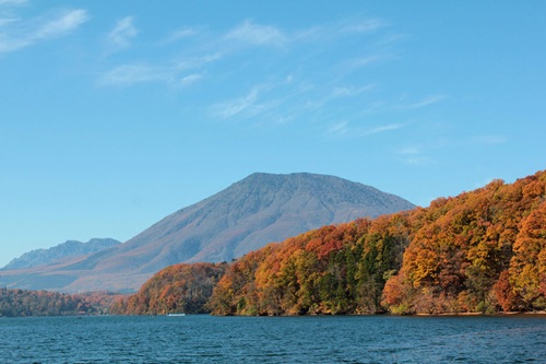 野尻湖は秋になると湖周辺の木々が色鮮やかに染まります。