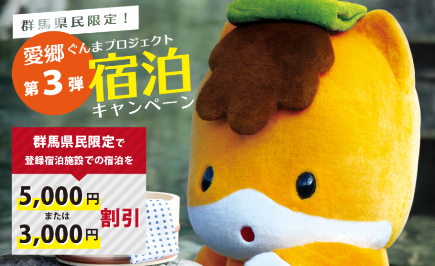 群馬県のお宿さんへ行かれる、群馬県民の方は一人5,000円、または3,000円の補助が受けられます!