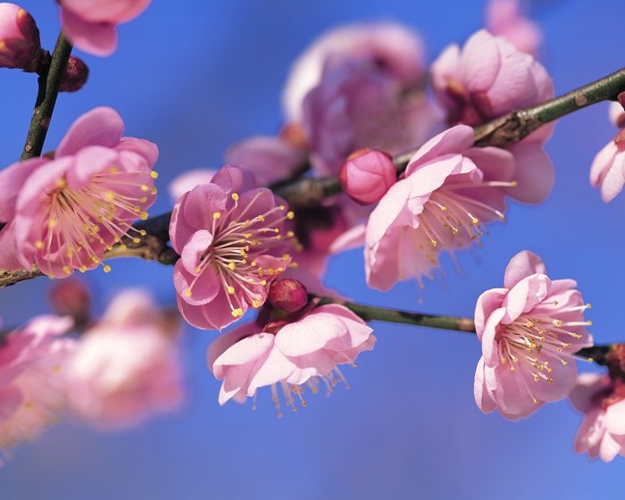 樹齢100年を越える梅の古木を含め、60品種・469本の梅が咲き誇り「早咲き→中咲き→遅咲き」と順に開花します。