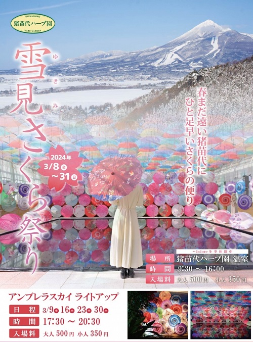 猪苗代ハーブ園では、3/8~3/31まで「雪見さくら祭り」が開催されます。