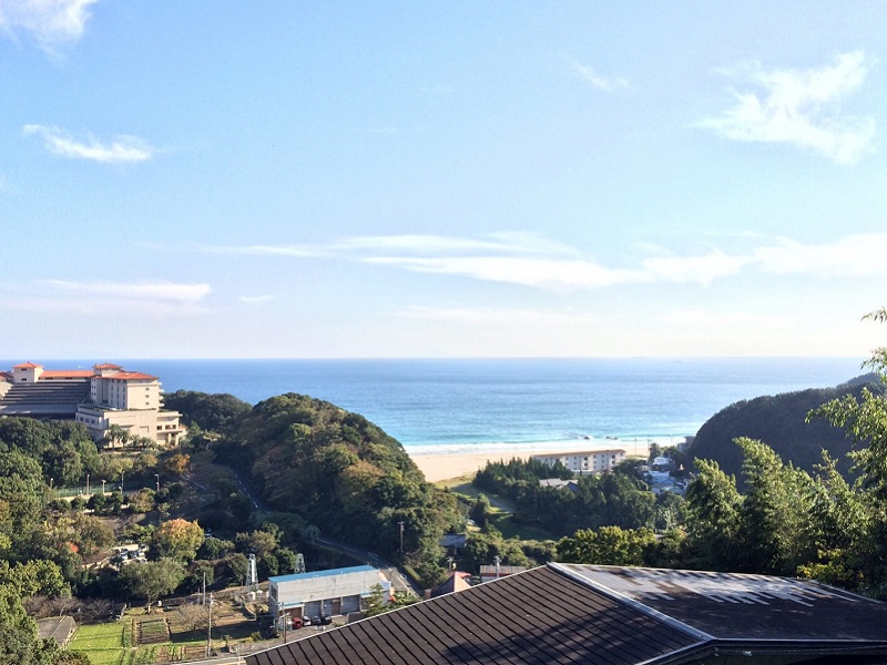 この目の前に見えるビーチは徒歩7分程度で行ける入田浜海水浴場。令和4年度も県が調査した水質調査で、昨年に引き続きAAランク獲得!毎日ビーチサンダルで遊びに行けます。
