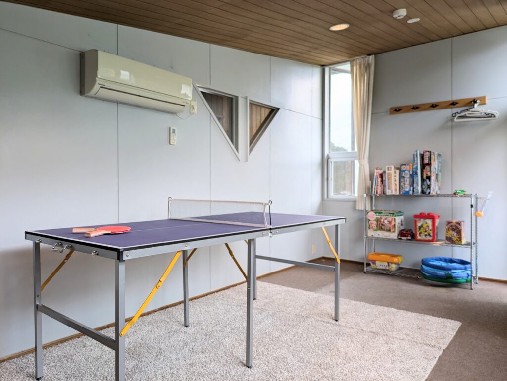 階段を上ると2階にはプレイルームがございます。卓球台とお子様用おもちゃをご用意しております。