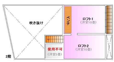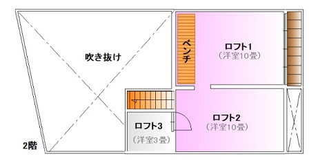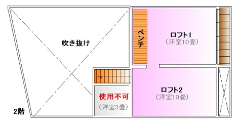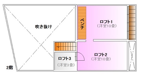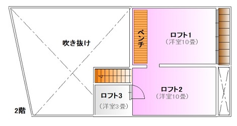 階段を上がると二階はロフト。洋室のお部屋が2部屋あります。ロフトといっても天井は通常の高さ。吹き抜けのリビングとの一体感を楽しみながら滞在できます。建物玄関を出たところにはBBQ場がございます。屋外スペースですので、コンロを囲みながら皆でわいわいとバーベキューをお楽しみ下さい。