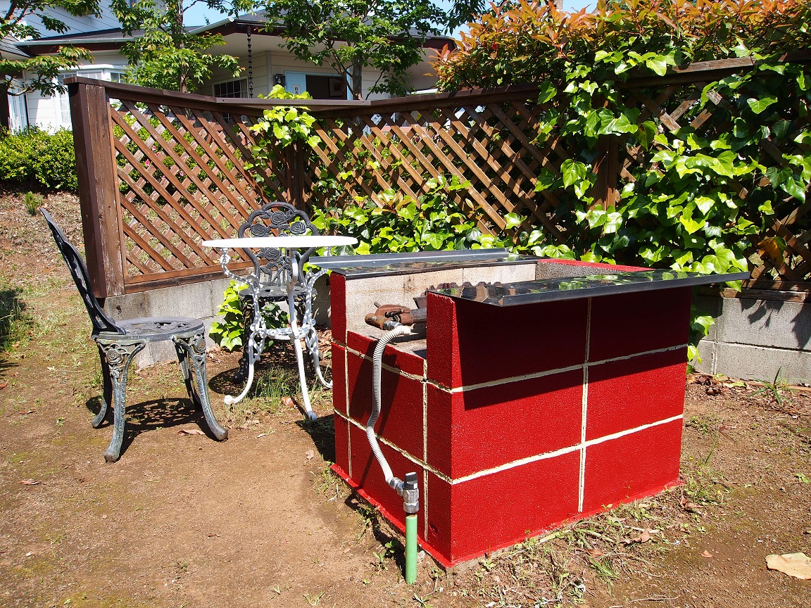 伊豆002 コテージではバーベキューも手軽に行えます。ガスコンロの設備がしっかりあり。