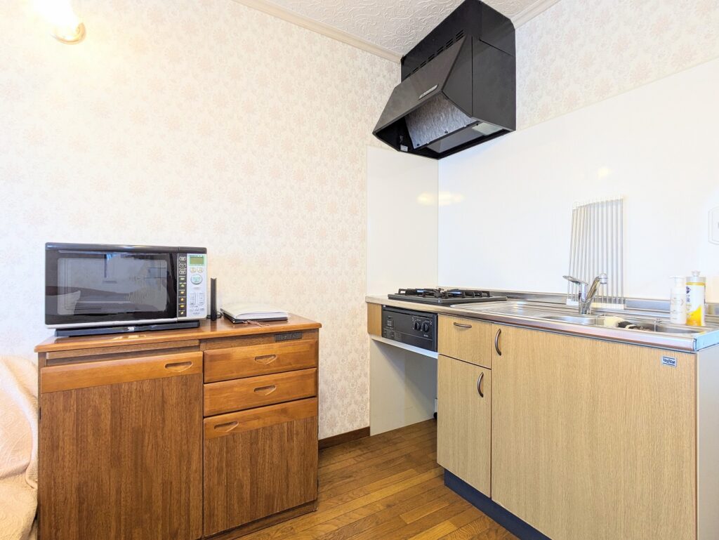 伊豆002 キッチンにはガスコンロ2口完備。フルキッチンで自炊がきちんとできます