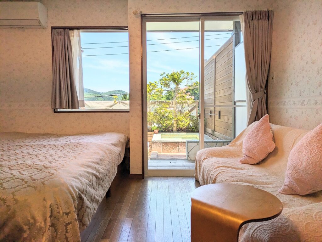 東向きの明るいお部屋です。テラスに天然温泉が楽しめる露天風呂があります。