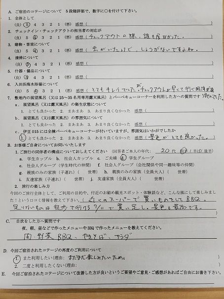 コテージではBBQも出来るし、海も近いしすごく良いと思います。料金も安いし。