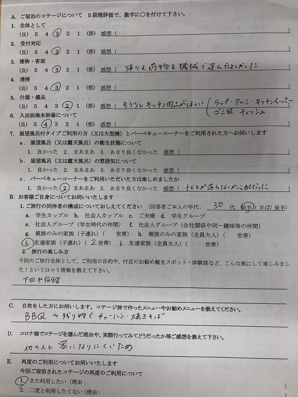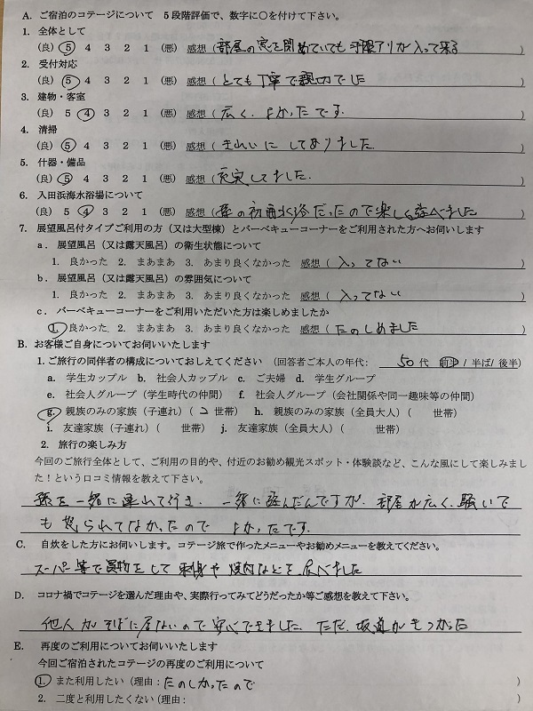 他の人と密になりにくいためコロナ禍でコテージを選択。