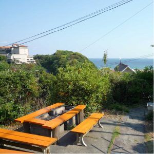 バーベキュー場からの景色。全棟、海が目の前に一望のもと。