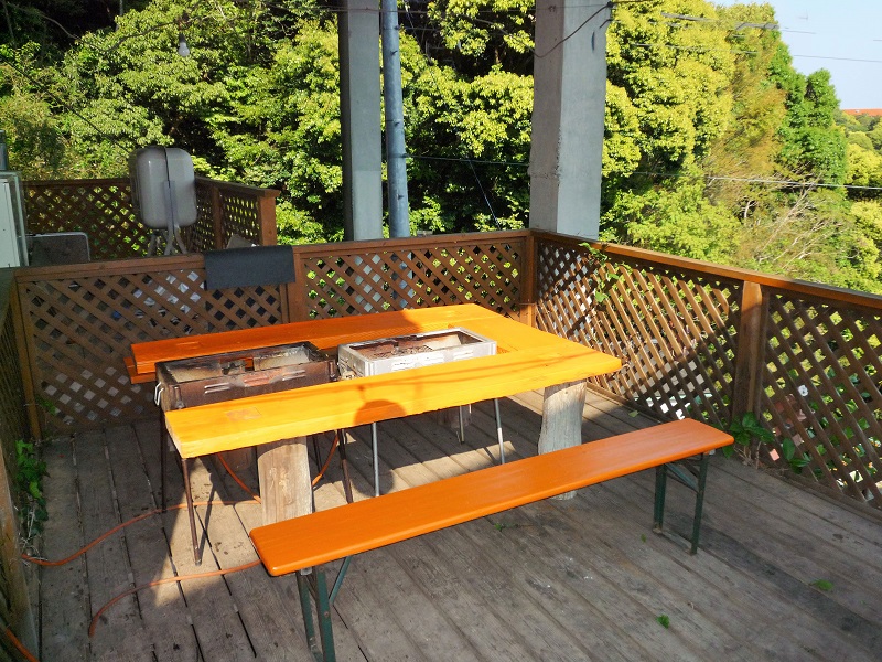 バーベキューコーナーは、展望風呂の下部になり、建物のすぐ近く。屋根付きスペースになっています。海を見ながらグループ専用でBBQをお楽しみください!
