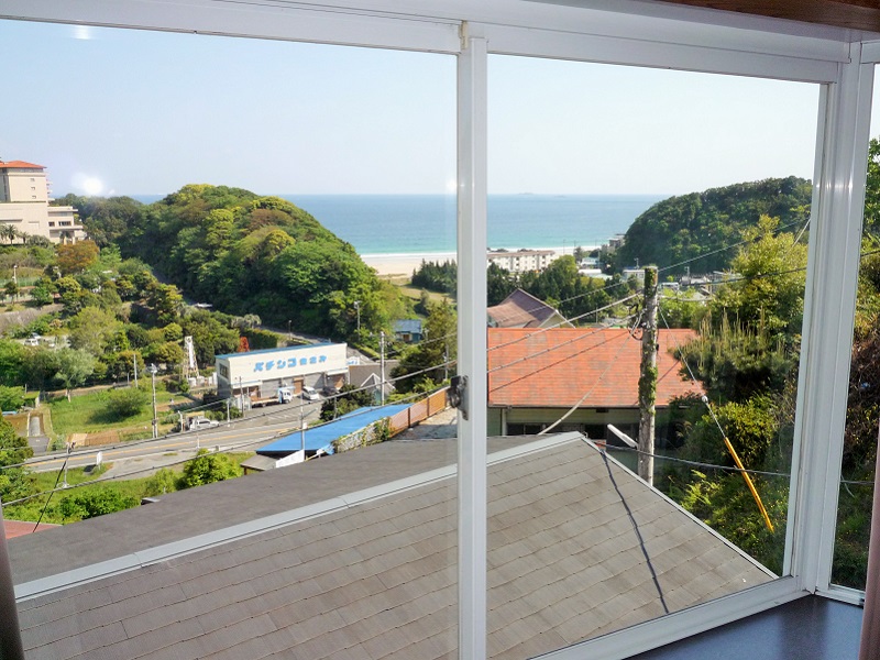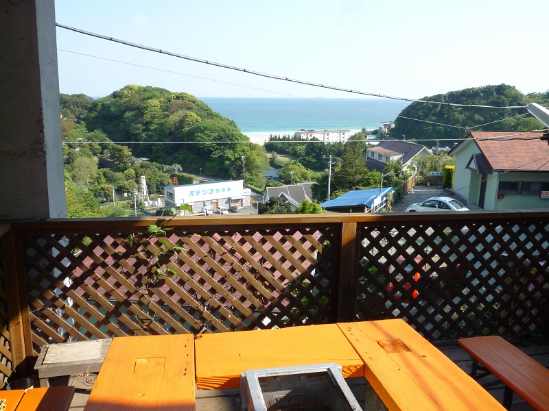 BBQ場からの景色。海が一望できる高台にあります。BBQ場はコテージのすぐ近く。