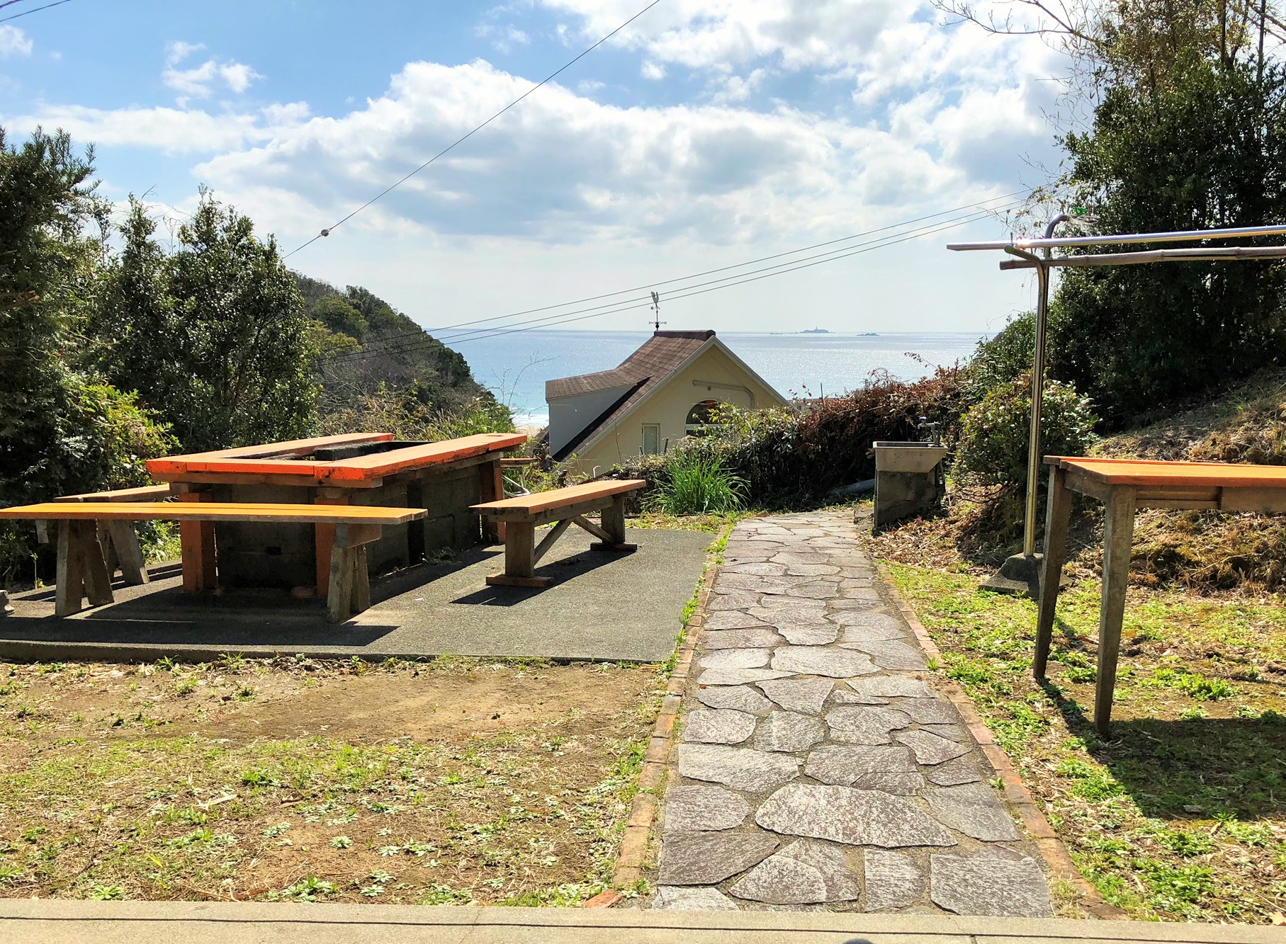 敷地内にある展望風呂を貸切で利用できます!カラン5か所。コテージからは徒歩2分ぐらいの所です。日中は海が見え、夜は月灯りや灯台の明かりが瞬くのが見えます。いつでも自分たちの貸切でご利用いただけるので、お休み前の入浴はもちろん、海水浴後に体を温めたりするにも便利。