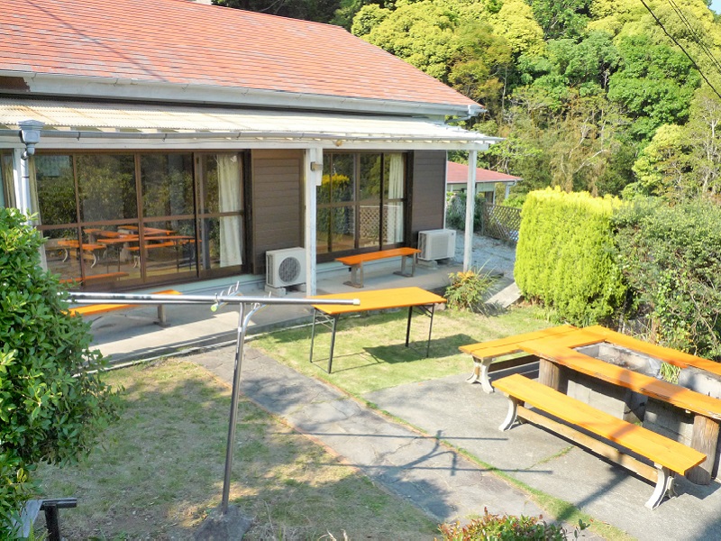 伊豆015のコテージの中では唯一、こちらの15名用コテージのみに専用のお庭がついています!子供達の遊びスペースになったり、夏はビニールプールを広げたりと遊びの幅が広がります。一角にはバーベキューコーナーも付いていますので、潮騒を聞きながらのプライベートバーベキューにもご利用いただけます。