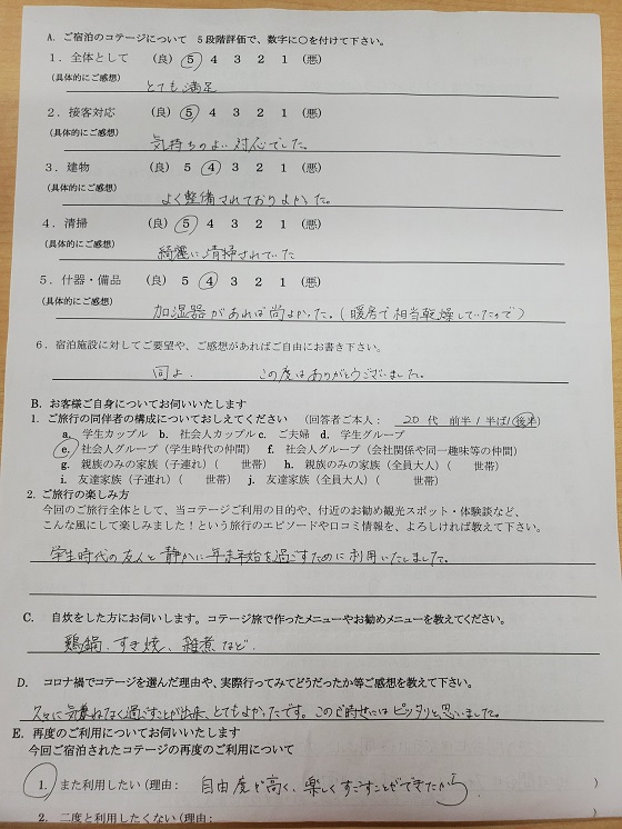 学生時代の友人と静かに年末年始を過ごすために利用いたしました。