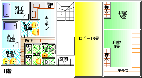 ロビー部分が18畳あるので、そこに皆が集まって食事をしたり会合ができます。