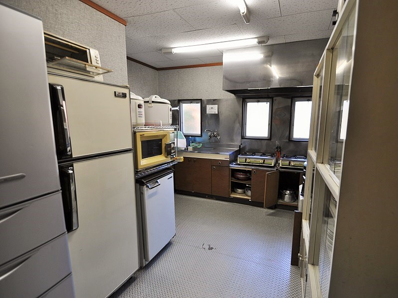 ロッジタイプは大型厨房有。大勢で自炊できます。大人数分の調理器具・食器なども揃っています。