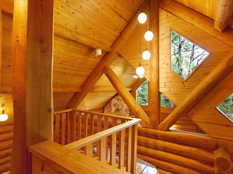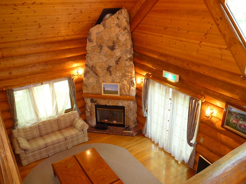 極太丸太を真近で感じることができ、暖炉・吹き抜けもある豪華な内装で、予約が取りにくい人気コテージです!