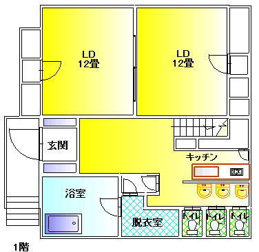 一番棟数が多いタイプ。1階はLDが12畳x2間、2階に和室2間がございます。1階にはスキー乾燥室もあり、スノーシーズンも快適です。ペットの同伴が可能なタイプですので、数世帯ファミリーでの旅行にも便利です。