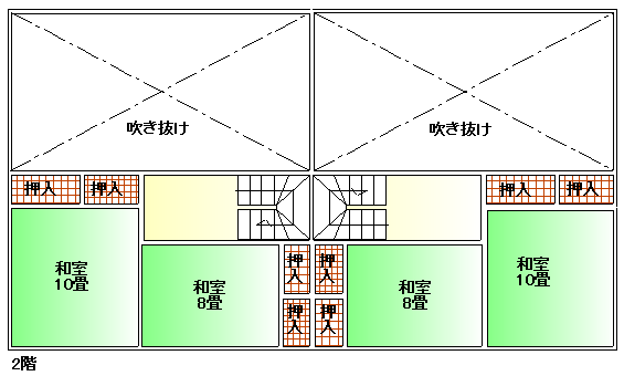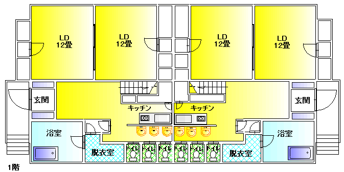 室内はBタイプのキッチン部分を開放し2棟同時に利用します。
