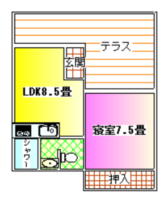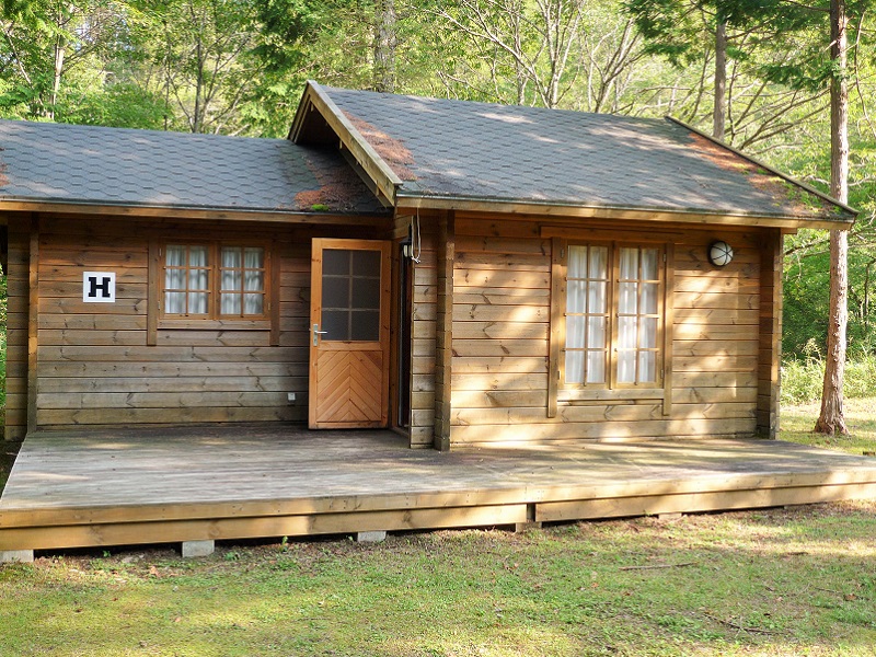 リビングが8.5畳のコテージです。平らな平面の場所に建っているため、利用しやすい立地です。