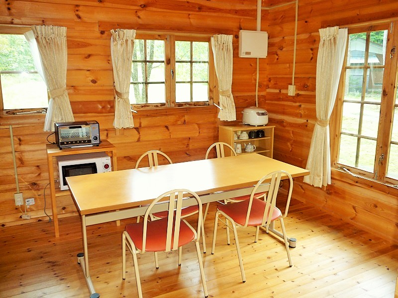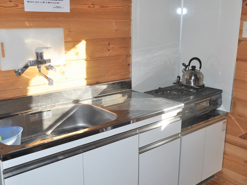 なにより低価格で、室内にはキッチンスペースと、自炊に必要な調理器具食器も完備なので、自然の中で長期滞在したい方にもお勧めです。