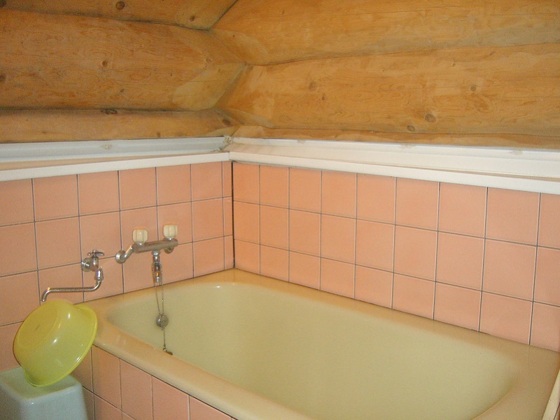 ログハウス内の浴室例。付近の日帰り温泉に行くのもお勧めです。