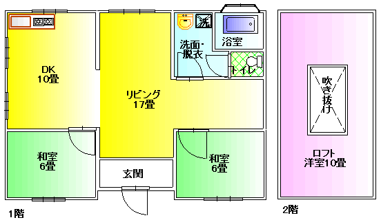 建物内部は、広い吹き抜けのリビングに和室と洋室の寝室が合計3部屋ご利用いただけます。