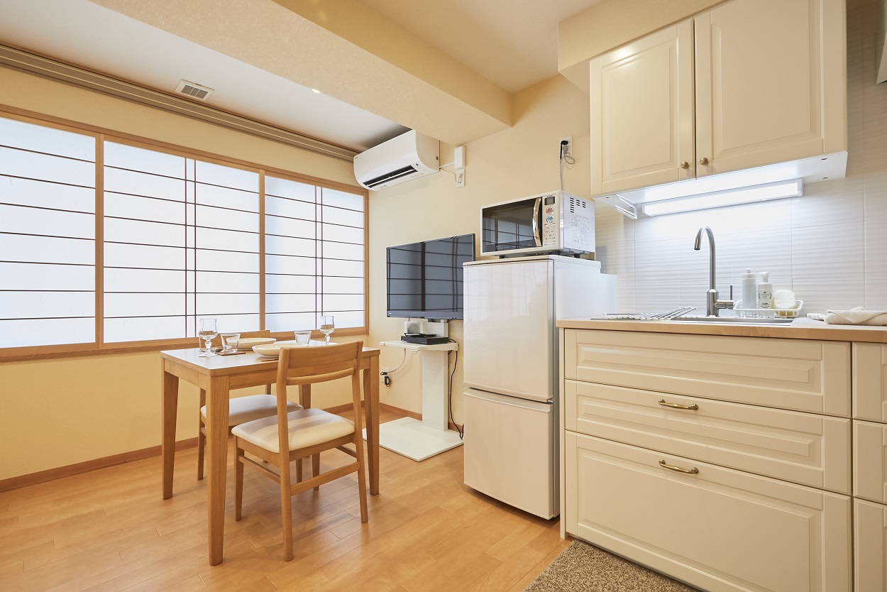和室の寝室部分にリビングダイニングスペースが付いた約30平米の客室。都内でありながら自宅のように過ごせる空間は、特に小さなお子様連れの連泊・長期滞在などに人気です。