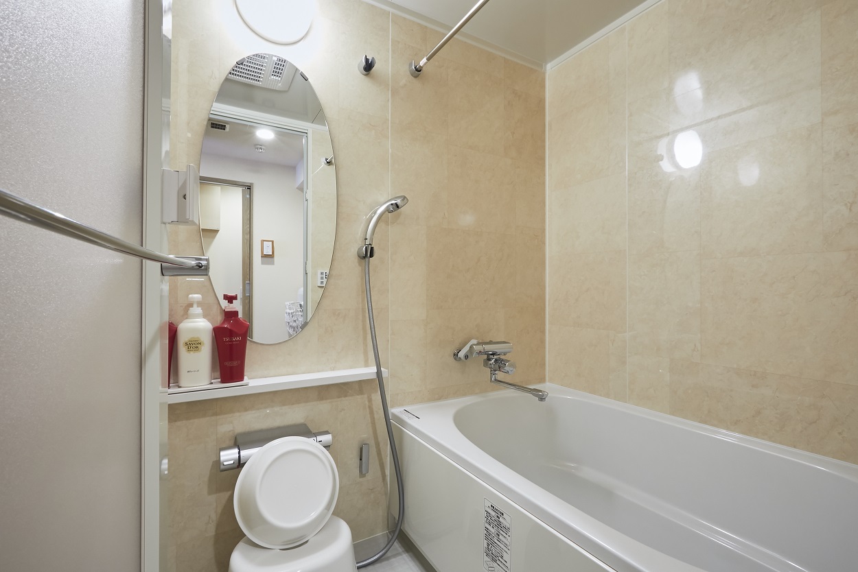 浴室はトイレとは別で、シャワー付き。通常のビジネスホテルとは異なり、自宅にいるかのようにお過ごしいただけるので、旅の疲れも癒せます。