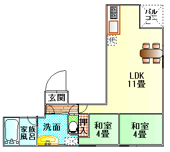 和室2間にリビングが14畳のお部屋。全員布団で寝られるタイプです。キッチンと大型冷蔵庫付き。浴室は通常サイズより大きなファミリータイプで大人2名お子様1名程度が余裕で入れる広さです!