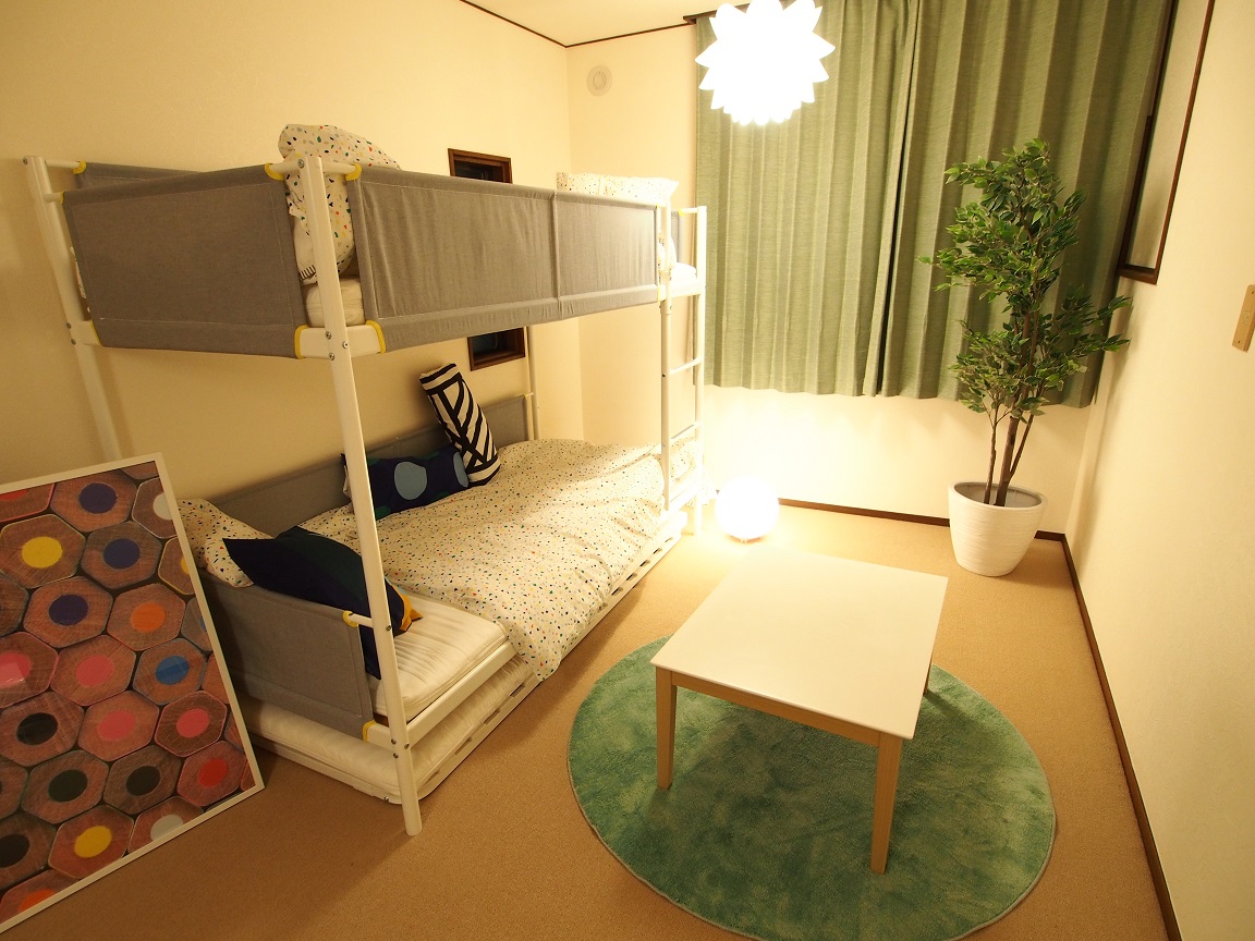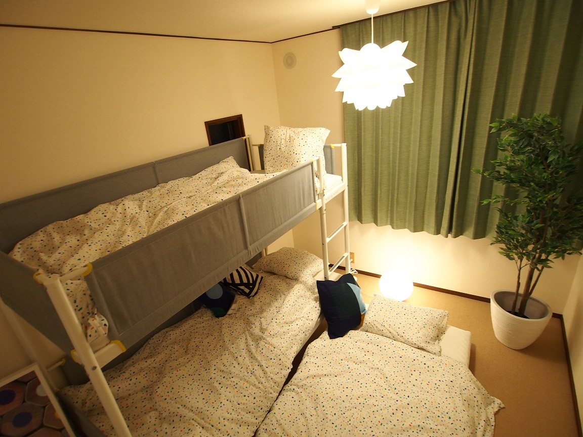 ベッドルーム2は広々10畳。2段ベッドは下段を引き出し、3人寝れます