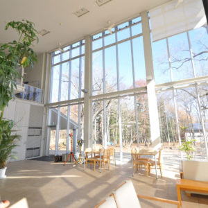 約3万坪の広大な別荘地には、2~30名用の大小さまざまなコテージが点在し、集会場・キャンプファイヤー場・ブルーベリーファームなど設備も充実。