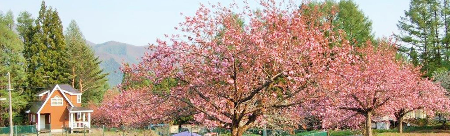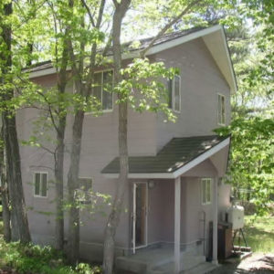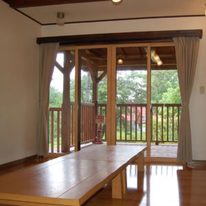 猪苗代駅から車で30分、街中の喧騒とは離れた大自然の別荘地には、ログハウスを含