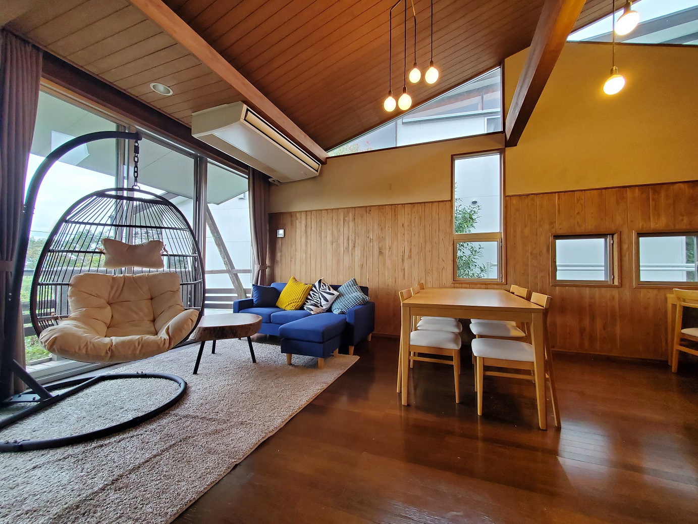 132㎡大型一戸建コテージを貸切。ハンギングチェアやヨギボーでコテージライフを楽しもう。