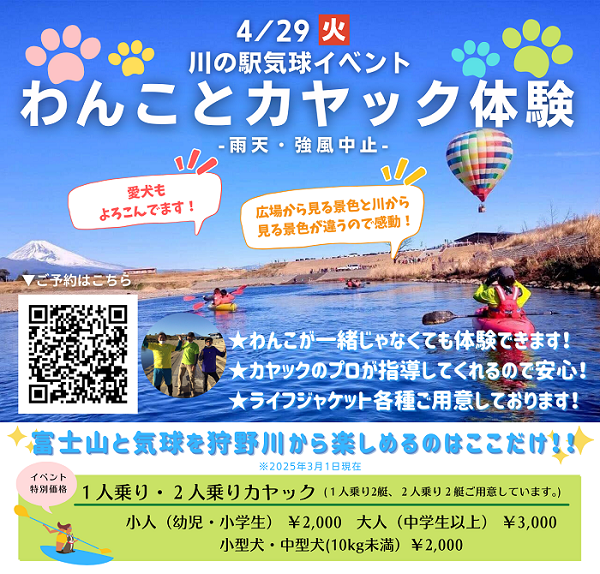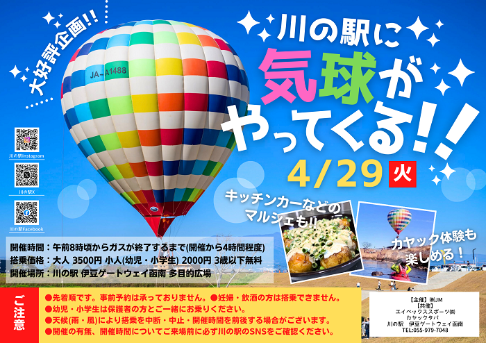 川の駅「伊豆ゲートウェイ函南」では、4/29(祝・火)限定で気球がやってきます♪