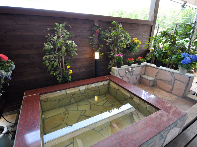 地下の浴室には、ミネラル豊富の湧き水を利用していて大好評です。