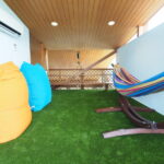 宝探しの作戦を練るためのテーブルやイスがありますよ。