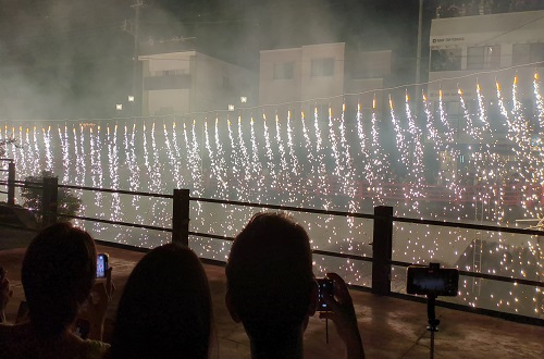 音と光が一体となり、温泉街を包み込むようなスケール感に観客は思わず見とれてしまいます。