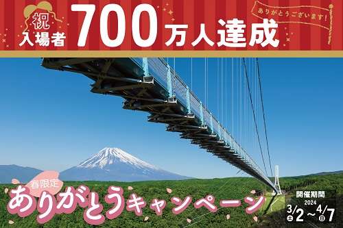 2015年開業以降、三島スカイウォークの来場者が700万人を達成しました!