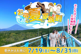 伊豆の人気観光スポット【三島スカイウォーク】では、7月19日(土)~8月31日(日)の期間中、小学生以下のお子様の入場料が無料になります!