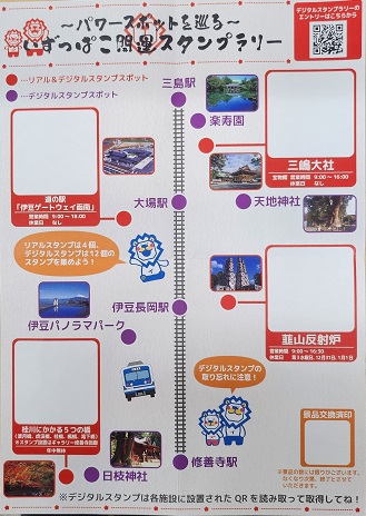 パワースポットで知られている「三嶋大社」「楽寿園」「日枝神社」「天地神社」や、有名な観光地「韮山反射炉」「桂川の架かる橋」などスタンプラリーに参加しながら