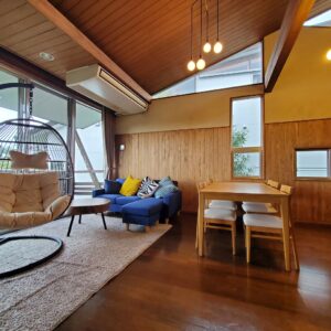 132㎡大型一戸建コテージを貸切。ハンギングチェアやヨギボーでコテージライフを楽しもう。